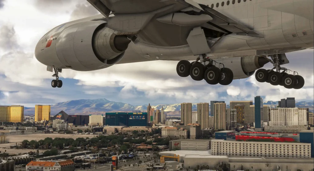 - Nearby Las Vegas hotels and resorts are faithfully modeled — giving you iconic views during takeoff, landing, or while taxiing.